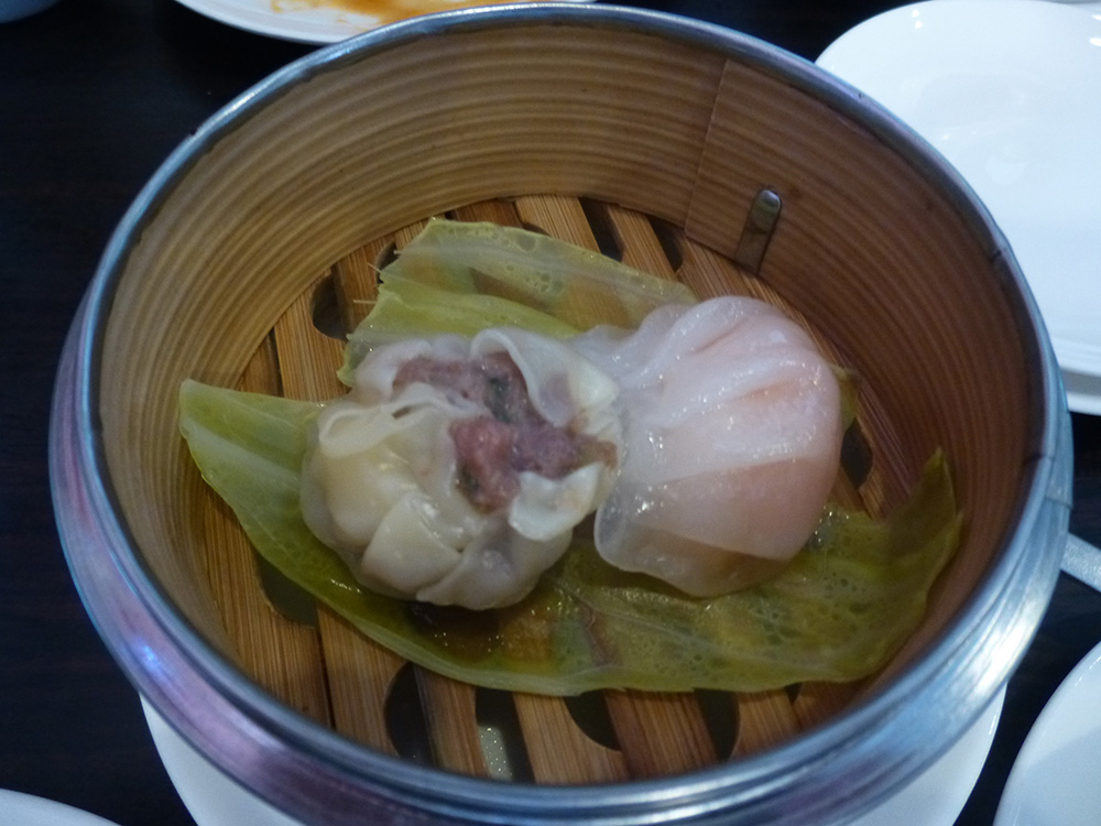蒸し物。牛肉のシュウマイとエビ餃子。おいしい。