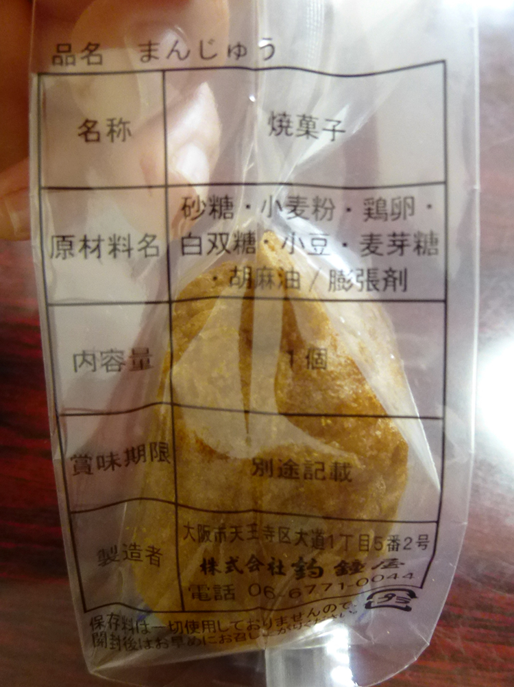 ※ちなみに、大阪で「釣鐘まんじゅう」を扱うお店は、この「総本家釣鐘屋」のほかに、「総本家 釣鐘屋本舗」(参考リンク:株式会社釣鐘屋本舗|大阪・お土産・釣鐘まんじゅう・お菓子)というのがあるらしい。