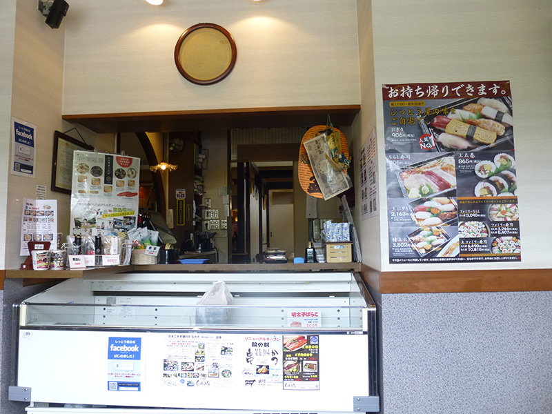 冷蔵ケースには、巻物やにぎりなどがいくつか並んでおり、それ以外のものも注文すれば作ってくれるようです。