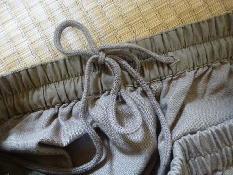 ウエスト部分はゴム+紐となっていて、いい感じに調整可能。