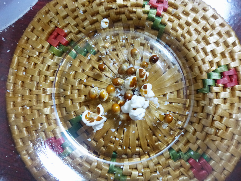 ちなみに弾け切れていないポップコーンも、固いながらなんとか食べることができます。物によってはかなり固いけど…。